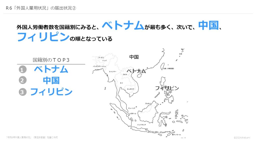 - 国籍別トップ3:ベトナム、中国、フィリピン