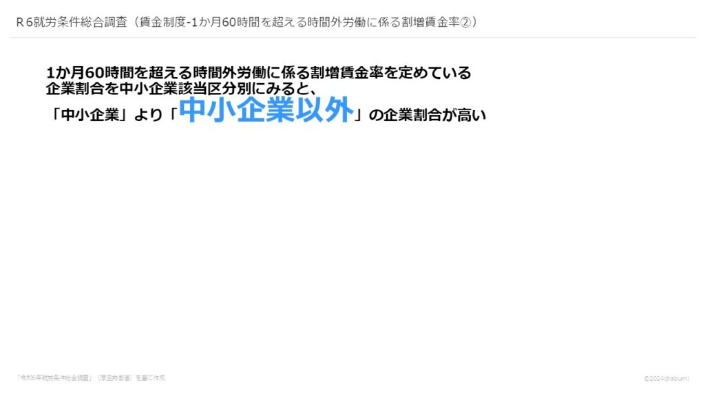 今回の調査は令和6年1月1日時点のものであり、すでに中小企業もこの改正の適用対象となっています。
